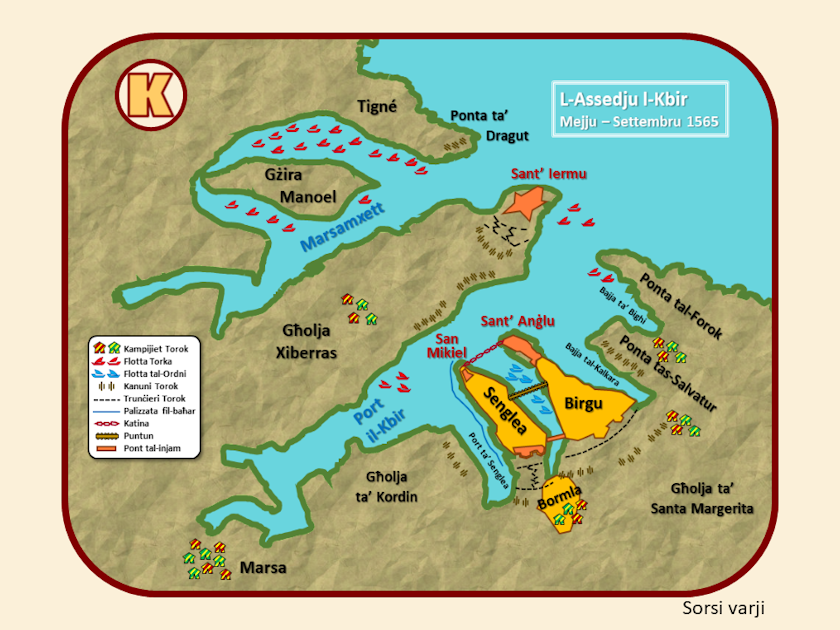 “Tistenniex xi unuri,” wieġeb de Valette. “Jiġri x’jiġri se nispiċċaw maqtulin xorta. U jien żgur mhux se naċċetta li nħallihom ikaxkruni fil‑ktajjen quddiem Sulejman. Le, Sinjuri. Jien biħsiebni nilbes uniformi ta’ suldat normali biex jekk jidħlu u jsibuni ma jagħrfunix, u joqtluni mas‑suldati komuni. Aħjar immut waqt il‑ġlied milli naqa’ priġunier.”